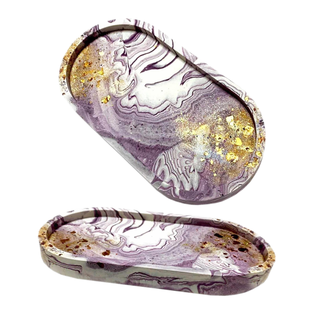 Ich verwende Hydroflow gerne für größere Schalen mit glatten Flächen, denn es ergibt eine fast porzellanartige Oberfläche mit einer tollen Haptik. Die Konsistenz ist fast wie Teig für einen Pfannkuchen, also etwas dickflüssiger als AquaCast. Trotzdem lässt es sich einfach und bläschenfrei gießen. Zum Einfärben verwende ich gerne die Pigmentdrops, aber auch die Perlglanzpigmentpulver bzw. die Neonpigmente. Die Farben kommen schön intensiv raus. Vor allem beim Marmoreffekt. Ich finde, dass Hydroflow deutlich fester ist als andere Gießmassen. Das macht sich vor allem bei filigranen Sachen oder Kanten bemerkbar, wo leider sonst manchmal was wegbricht. Weil es so fest ist, nutze ich zum Feilen einen kleinen Dremel, um z. B. Kanten zu glätten, falls ich zu viel Gießmasse in eine Form gegossen habe.